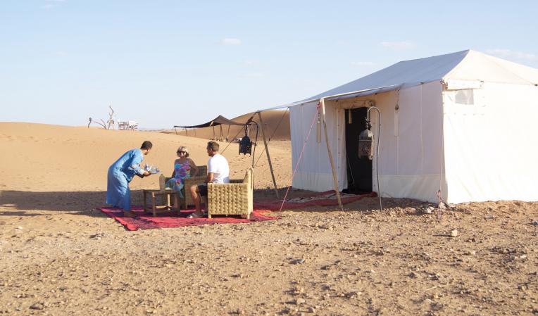 Des tentes apparaissent à l’horizon, vous arrivez à dos de dromadaire tel un nomade... Un accueil local vous est réservé dans notre bivouac authen